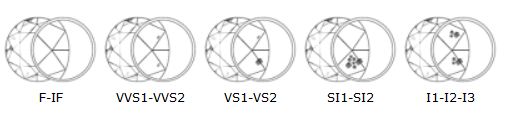 Slightly Included (two grades). Minute inclusions more easily detected under 10x magnification. - I1-I2-I3
